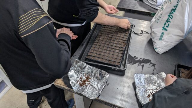 リンゴの播種をする農業生産部。え?リンゴ? 2026年01月09日 カテゴリー: 部活動 来年度の研究活動に向けてリンゴの種を蒔きました。インキュベーターで種を低温貯蔵すること2週間強。 苗木ができたらどんな研究を始めるのか。続報をお待ちください。