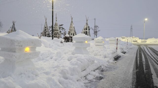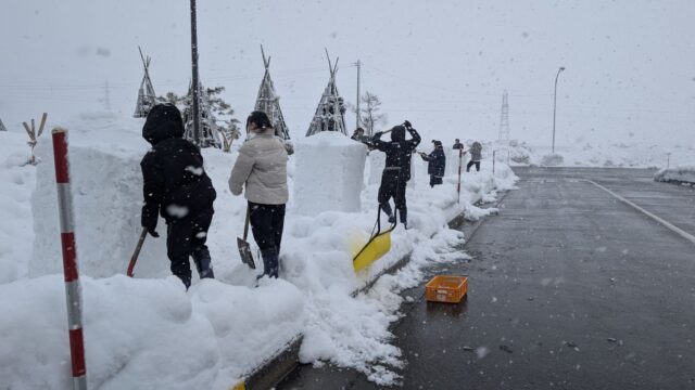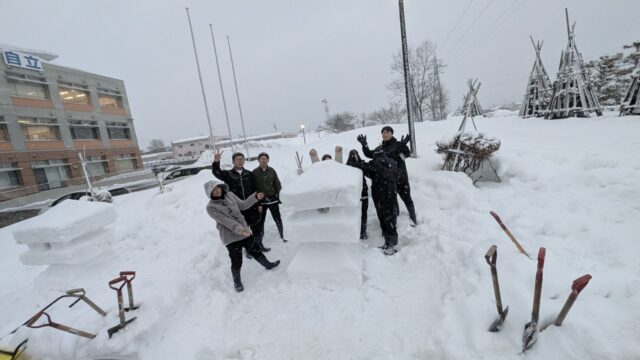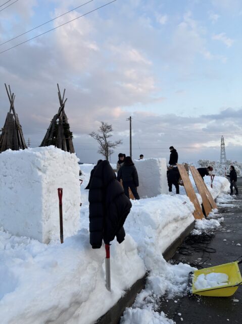 サッカー部、農業クラブ、農業生産部の合作の雪灯籠ができました!