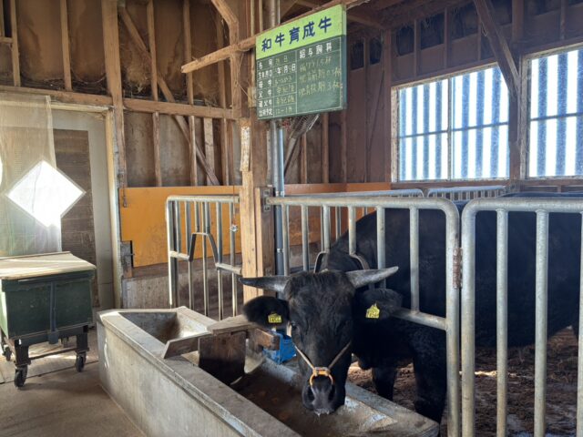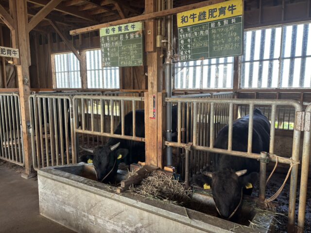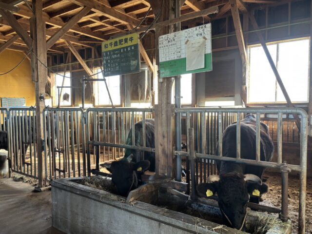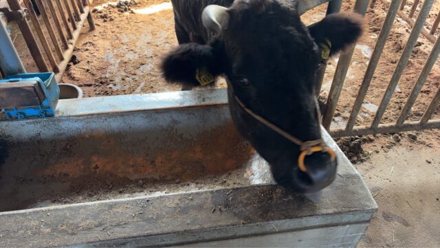神室産業の農場の畜舎を紹介します。現在、肉用牛が6頭います。肥育牛と繁殖牛それぞれ3頭ずついます。