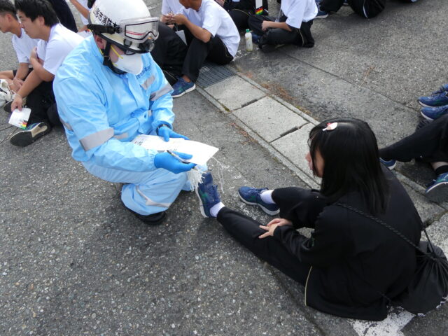 ビジネス創造科 大規模避難訓練に参加しました。 2025年10月27日 カテゴリー: 学校から, 学科から 10月10日(金)最上地区全域で行われた大規模避難訓練に、新庄神室産業高校全員が参加しました。ビジネス創造科は旧新庄病院や仮設病院(スポーティ)にて訓練を行いました。