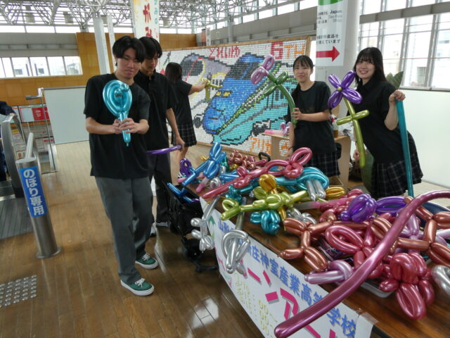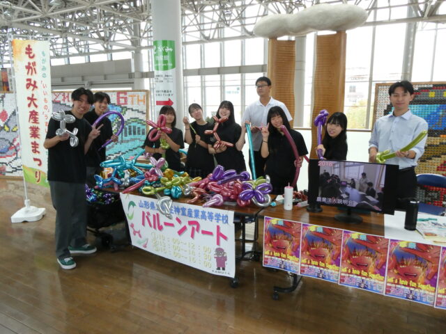 ビジネス創造科 もがみ大産業まつりに参加しました。 2025年10月27日 カテゴリー: 学校から, 学科から 10月13日(月)、もがみ大産業まつりに参加しました。2年生は生徒会としてバルーンアートの配布を、1年生は舞台準備をお手伝いしました!