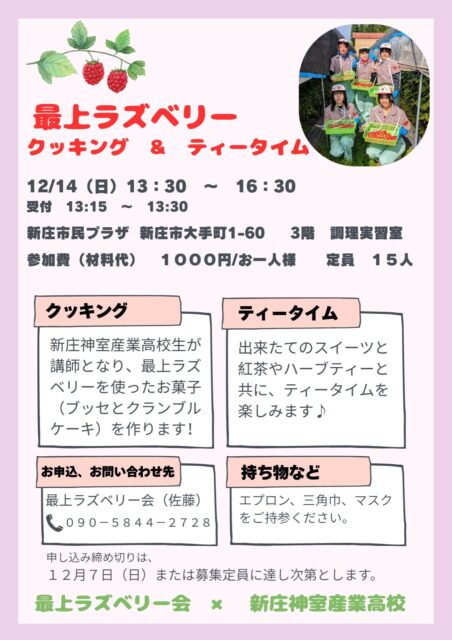 お申込みは「最上ラズベリー会の佐藤さん」までお願いします。詳細はちらしをご覧ください。皆さんの参加をお待ちしています。
