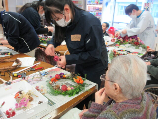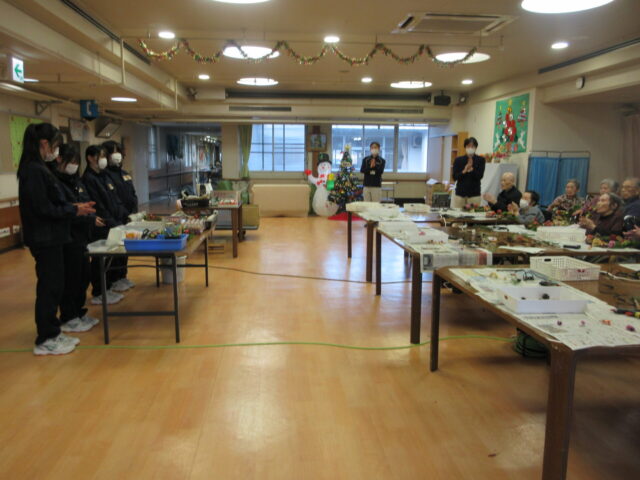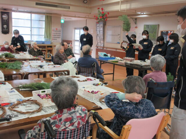 交流活動クリスマスリースづくり【農産活用科】 2025年12月14日 カテゴリー: 学校から 交流活動で「新寿荘」さんにお伺いしました。本校の農産活用科の2年生の生徒が講師となり、施設の方々と交流し、楽しみながらクリスマスリースづくりを行いました。様子をご覧ください。第2弾の交流活動は1月の予定ですので、またご報告します(^^♪