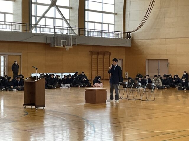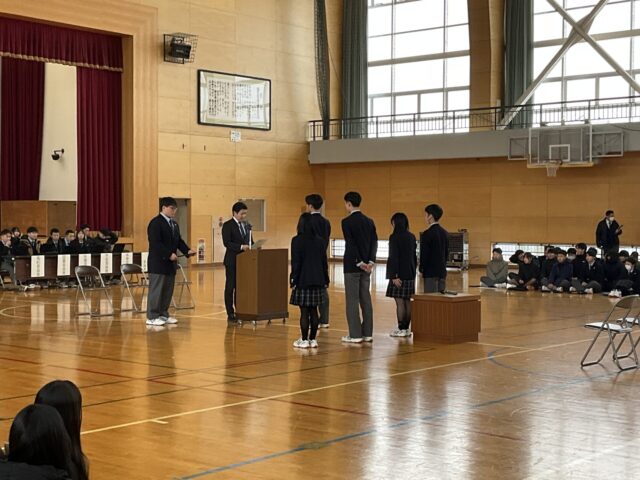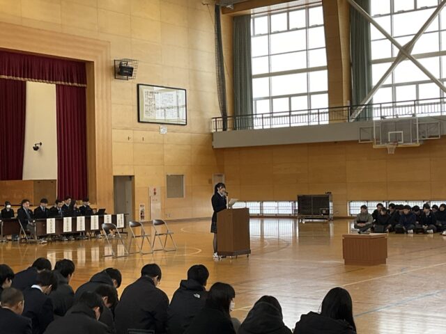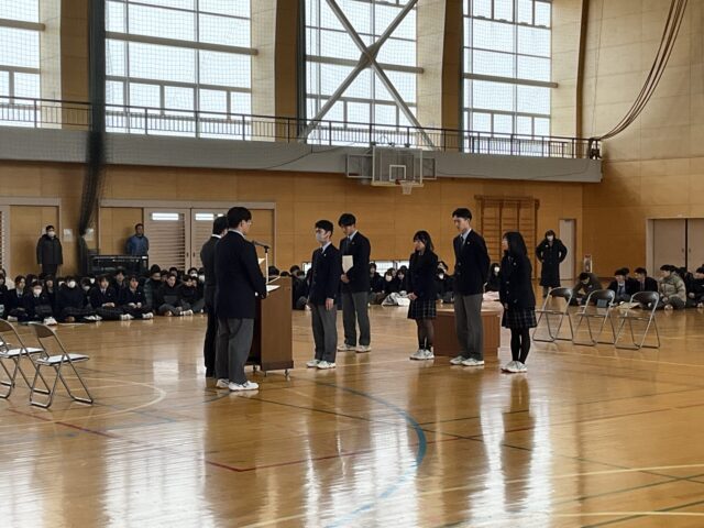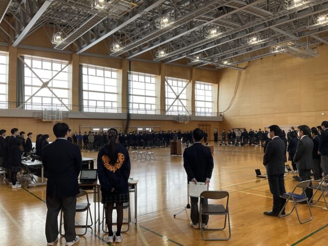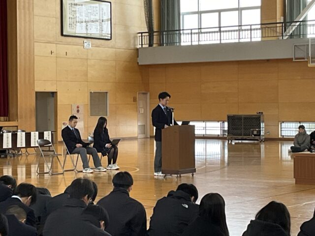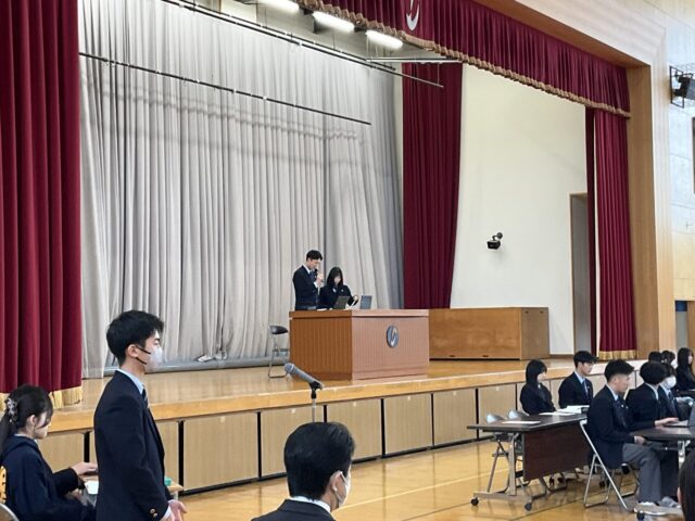 始めに校長先生より新役員の認証があり、新役員体制となり生徒総会が行われました。執行部含め、前期の報告や反省について、予算について説明がありました。後期の取組みについて説明があり、アルバイトや服装規定などについて意見が出されました。