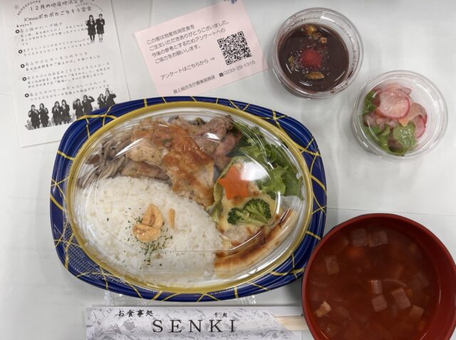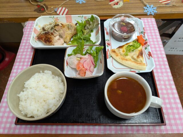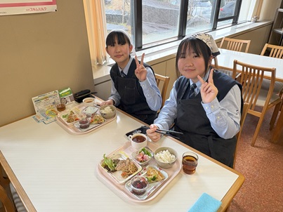 12月22日(月)最上総合支庁1階の「お食事処千起様」で、ライフクリエイト部がメニュー考案をした地産地消定食を販売しました。