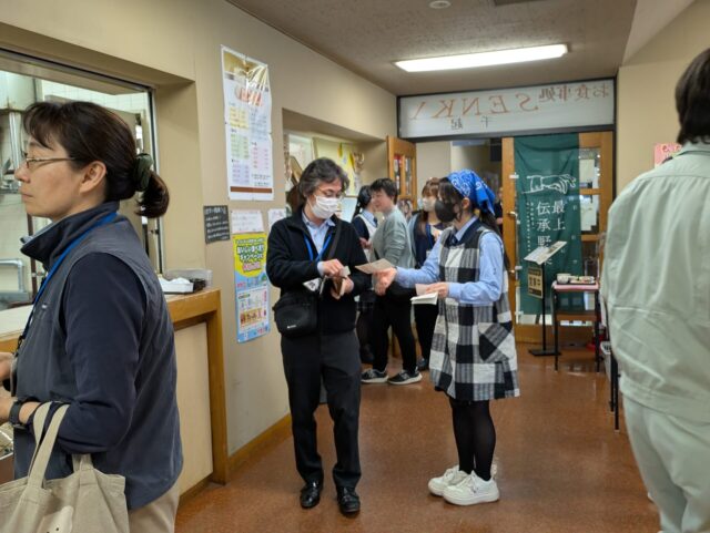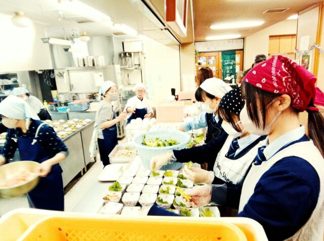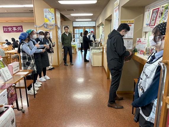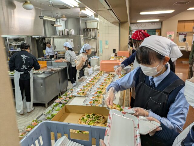 販売当日は、部員6名がお店のお手伝いをさせていただきました。開店と同時に定食を目当てに来て下さるお客様の行列ができ、大盛況でした。お陰様で閉店時間前に予定数の150食を完売しました。お越しいただきました皆様、ご協力いただきました皆様に感謝申し上げます。