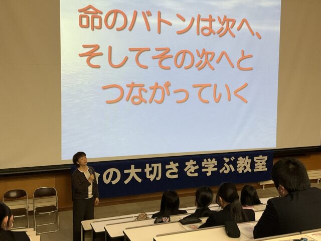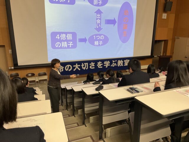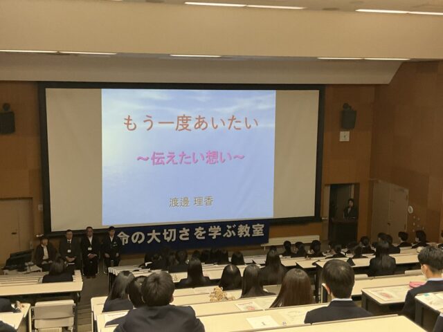 本校の1年生を対象に「こまくさの集い」代表の渡邊理香さんをお招きし、「命の大切さを学ぶ」講話を実施しました。ご自身の経験に基づいた渡邊さんの真摯な言葉に、生徒たちは深く聞き入っていました。当たり前だと思っている日常や、自分や周りの人を大切にすることの重みを改めて考える貴重な時間となりました。