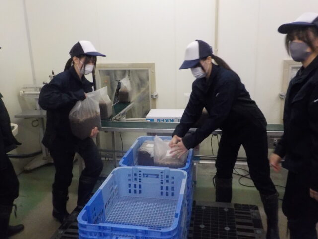 🍄食料生産科では、地域の農業課題に対する探究学習の一環として、1月15日(木)に「きのこ生産現場視察・生産体験」を行いました。2年生15名が参加し、最上地域の特産である菌床しいたけの生産現場(鮭川村)を訪れました。