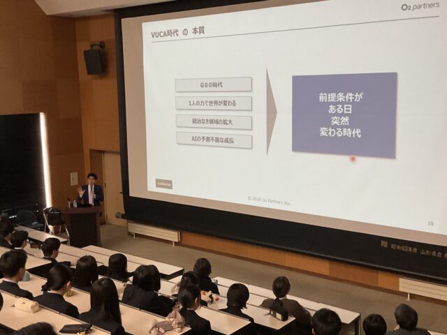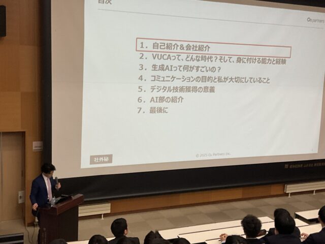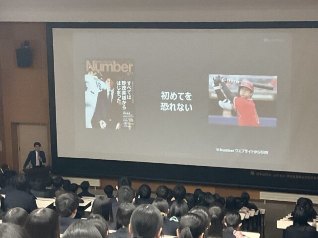 やまがたAI部 運営コンソーシアム会長であり、株式会社オーツー・パートナーズ代表取締役社長の松本晋一様をお迎えして、生成AIに関する特別講座を実施いたしました。対象は本校1・2年生全員です。現在の社会で強く求められている力や、生成AIの急速な進化とその実践的な活用方法について、豊富な具体例を交えながら、非常に分かりやすく丁寧にご講義いただきました。