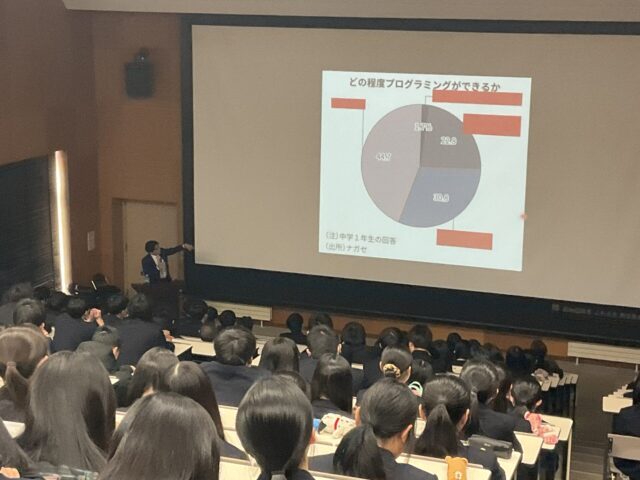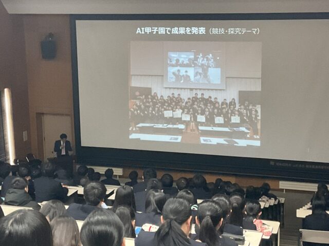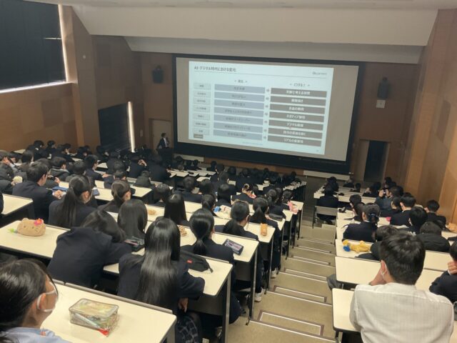 特に、AIを効果的に活用するための考え方や、逆にAIでは代替が難しい仕事・技術・人間ならではの価値など、今後の学校生活はもちろん、これからの社会生活においても大変参考になるお話を数多く伺うことができました。松本様には、お忙しい中わざわざ本校までお越しいただき、貴重なお時間を割いて熱心にご指導いただきましたこと、心より感謝申し上げます。